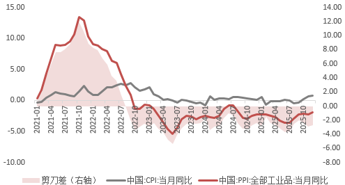 本月分娩尊府价钱同比下跌2.1%,生存尊府价钱下跌1.3%,降幅诀别收窄0.3和0.2个百分点剪刀差小幅走阔,高卑劣材料价钱分化情况取得改善。综上,产能惩办显效调换基数共同鼓舞,工业品价钱环比涨幅扩展。但现在需求不及、供需失衡特征长久存在,物价回升幅度或较为缓和,一季度同比能够率在负增区间启动。